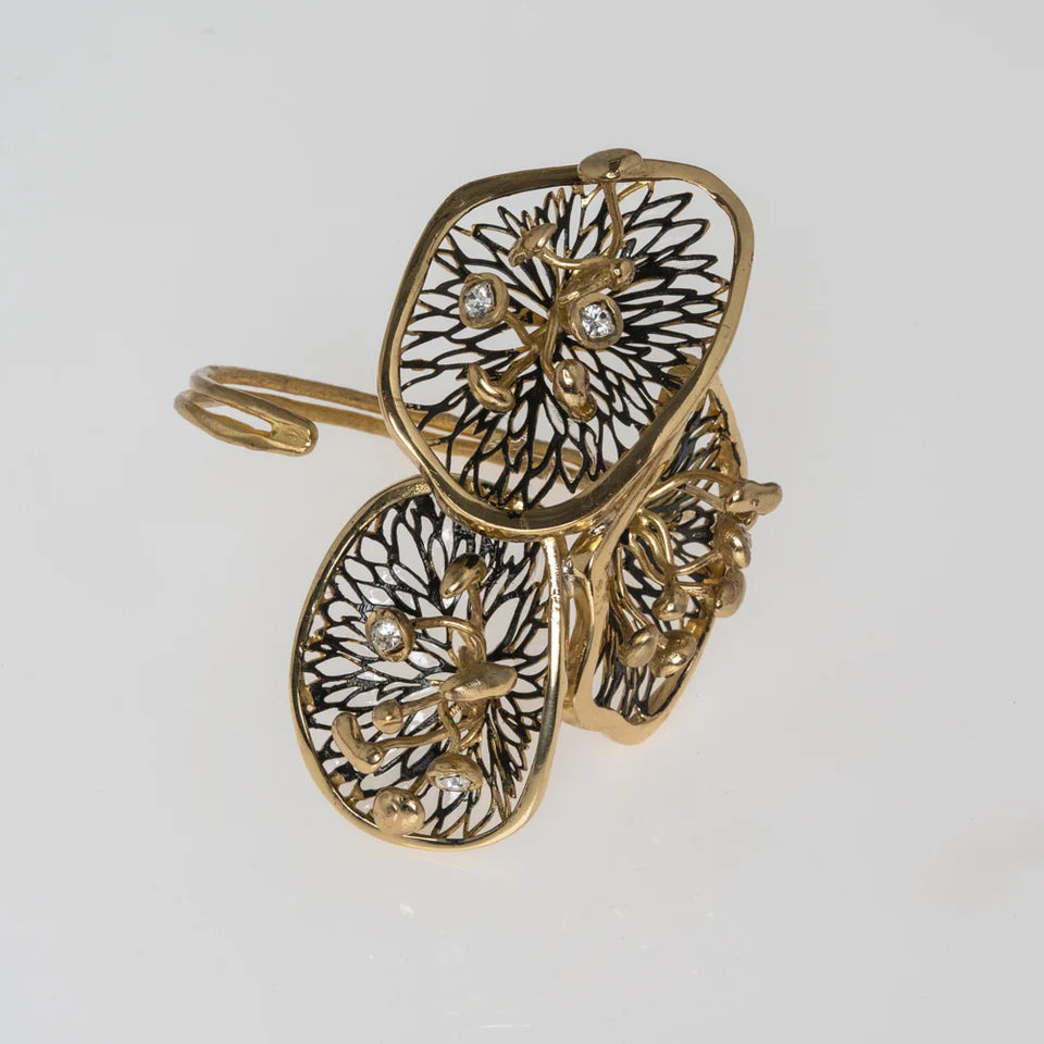 Stem Brass Black Oxidation Honey Crystal Rring